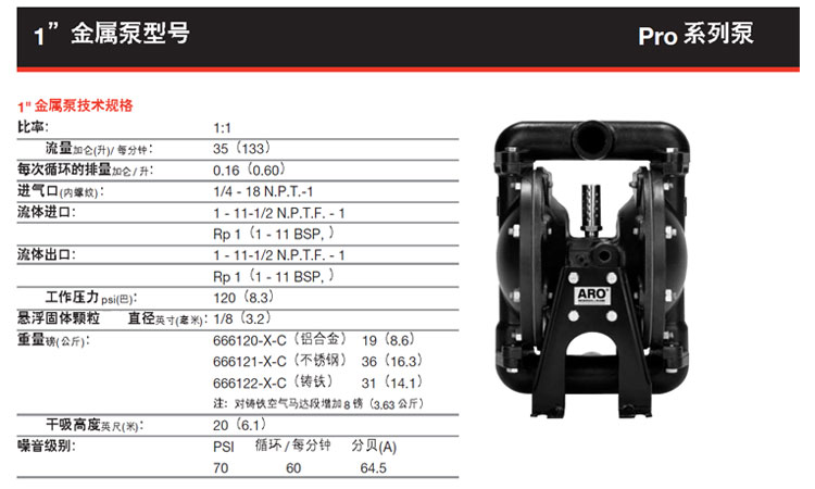 ARO氣動隔膜泵英格索蘭666120-3EB-C隔膜泵鋁合金管道泵