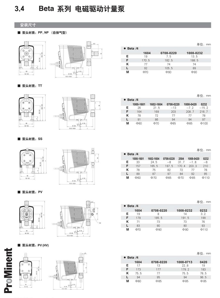 注:PPE,前兩位“PP”代表泵頭材質,后一位“E”代表密封件材質。