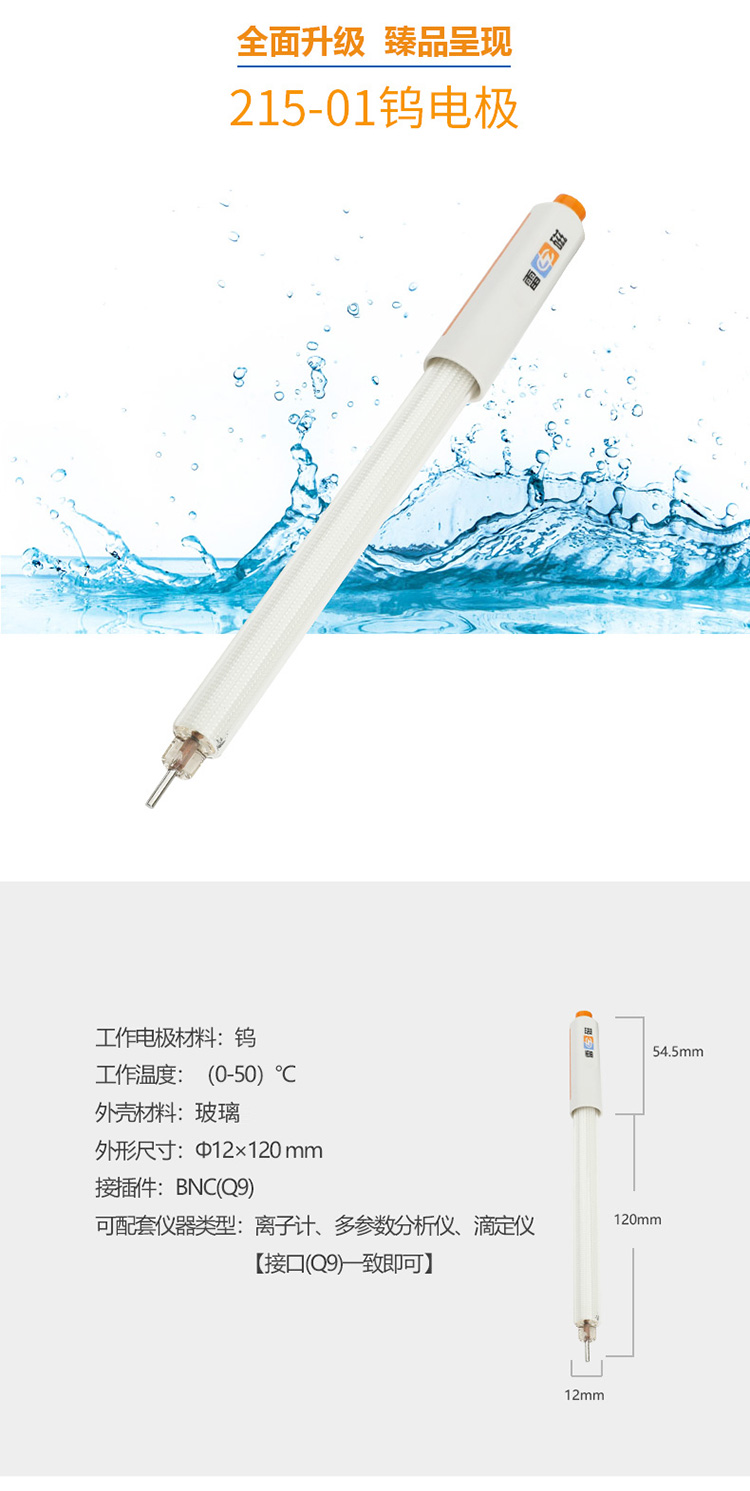 雷磁實驗金屬電極 215-01鎢電極傳感器探頭玻璃外殼材質(zhì)電極探頭