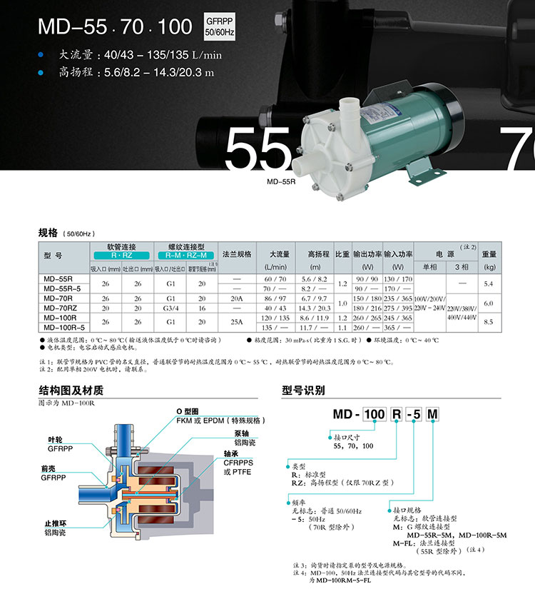 型號:IWAKI易威奇耐腐蝕磁力驅動泵MD-6