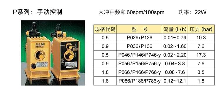 1-手動調(diào)節(jié)沖程長度及沖程頻率(手動雙調(diào))。頻率可調(diào)范圍:P12□,P13□ 0~60spm,其余均為 0~100spm 。
