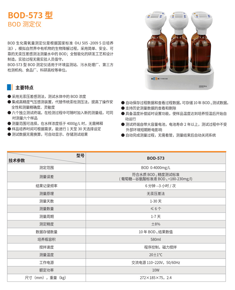雷磁水質分析儀BOD-573型BOD測定儀無汞壓差法水體BOD濃度測試儀