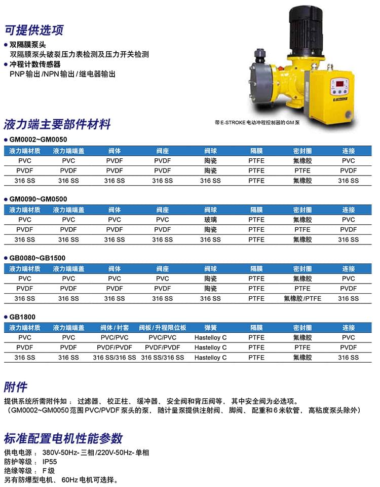 米頓羅GM型機械隔膜計量泵主要特征