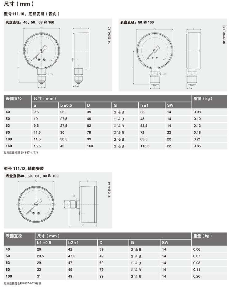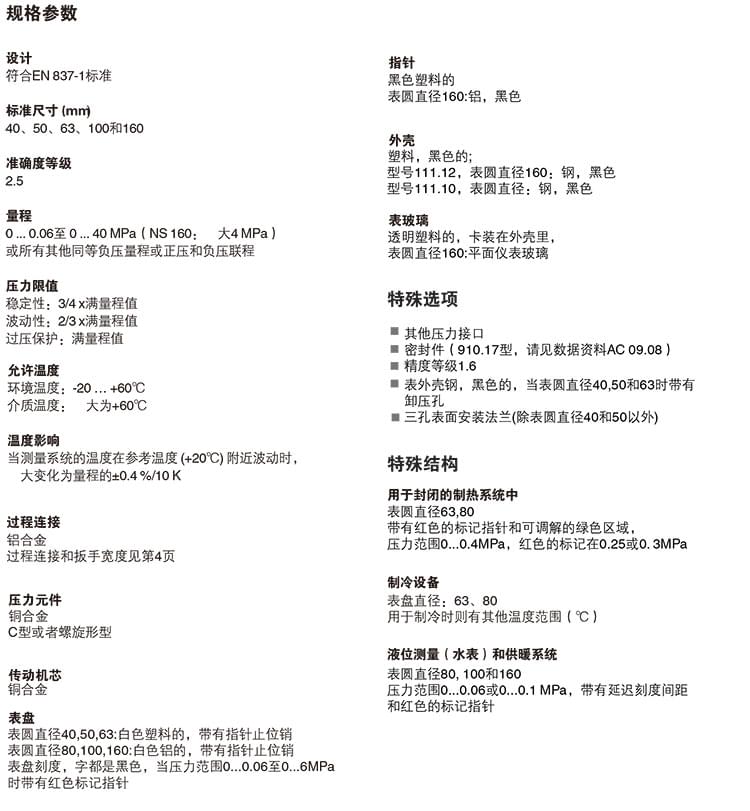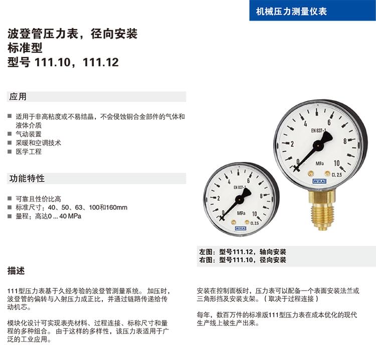 波登管壓力表111.10、111.12型機(jī)械壓力測(cè)量?jī)x表