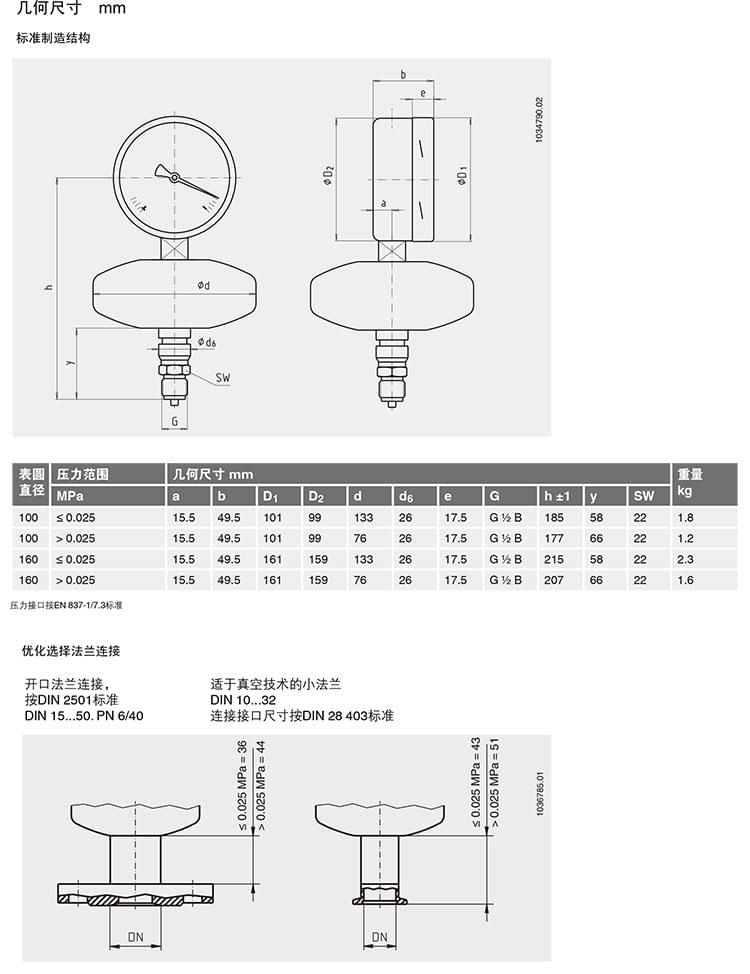2. 膜片壓力表,化學工業(yè)型,表頭不充液/充液,高過壓保護壓力表,針對UHP應用:422.12 432.50 432.56 423.36 423.25