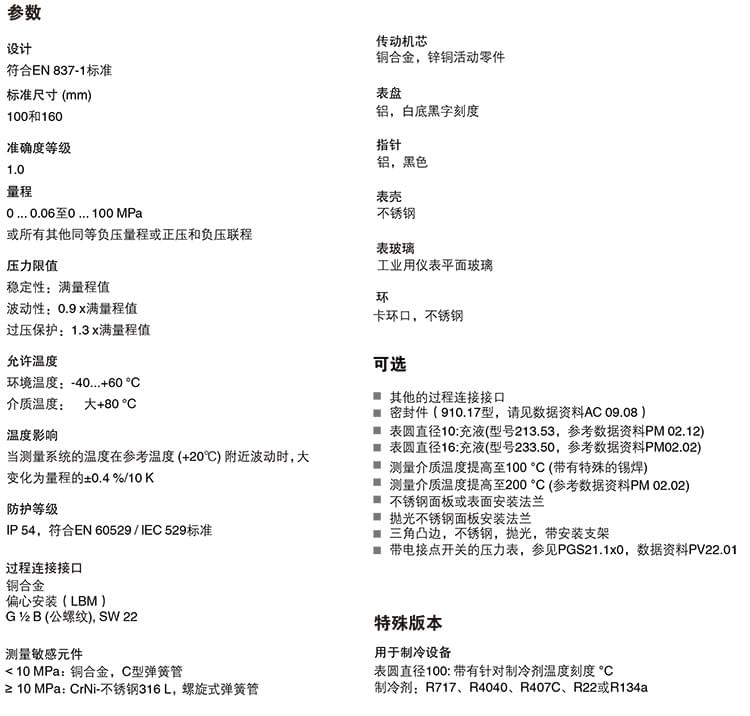 2. 膜片壓力表,化學(xué)工業(yè)型,表頭不充液/充液,高過(guò)壓保護(hù)壓力表,針對(duì)UHP應(yīng)用:422.12 432.50 432.56 423.36 423.25
