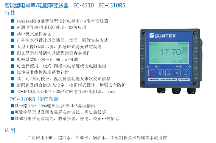 (SUNTEX)智能型電導率儀EC-4310 EC-4310 RS