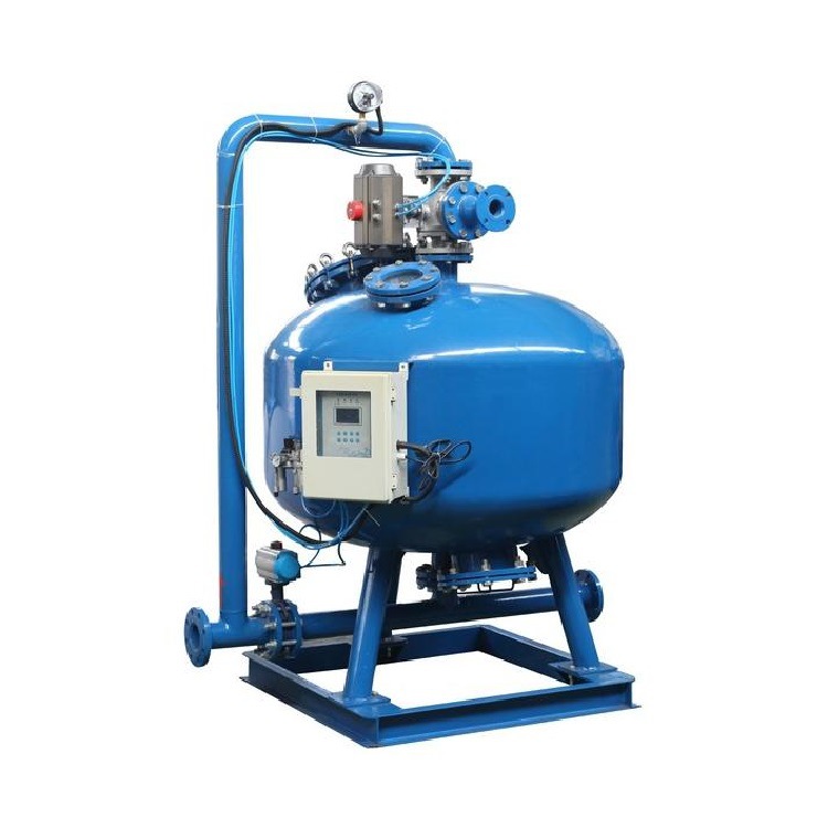 循環水系統運行過程中,尤其是冷卻水中會存在大量的懸浮物質。其中由于空氣中灰塵雜物的進入,日常加藥處理后會造成部分水垢、銹垢、微生物粘泥的脫落、分散,會造成水質的混濁。由于各種雜質在水中溶解度小,用機械過濾的方式去除,因此在系統管路上安裝旁流石英砂過濾器可收到良好效果。