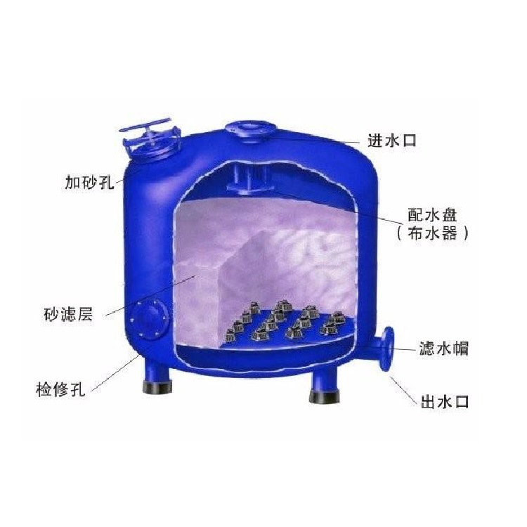 7.采用精制優選石英砂或石榴石作為過濾介質。根據水質情況進行選擇,濾料粒徑小可0.16mm的均質濾料。